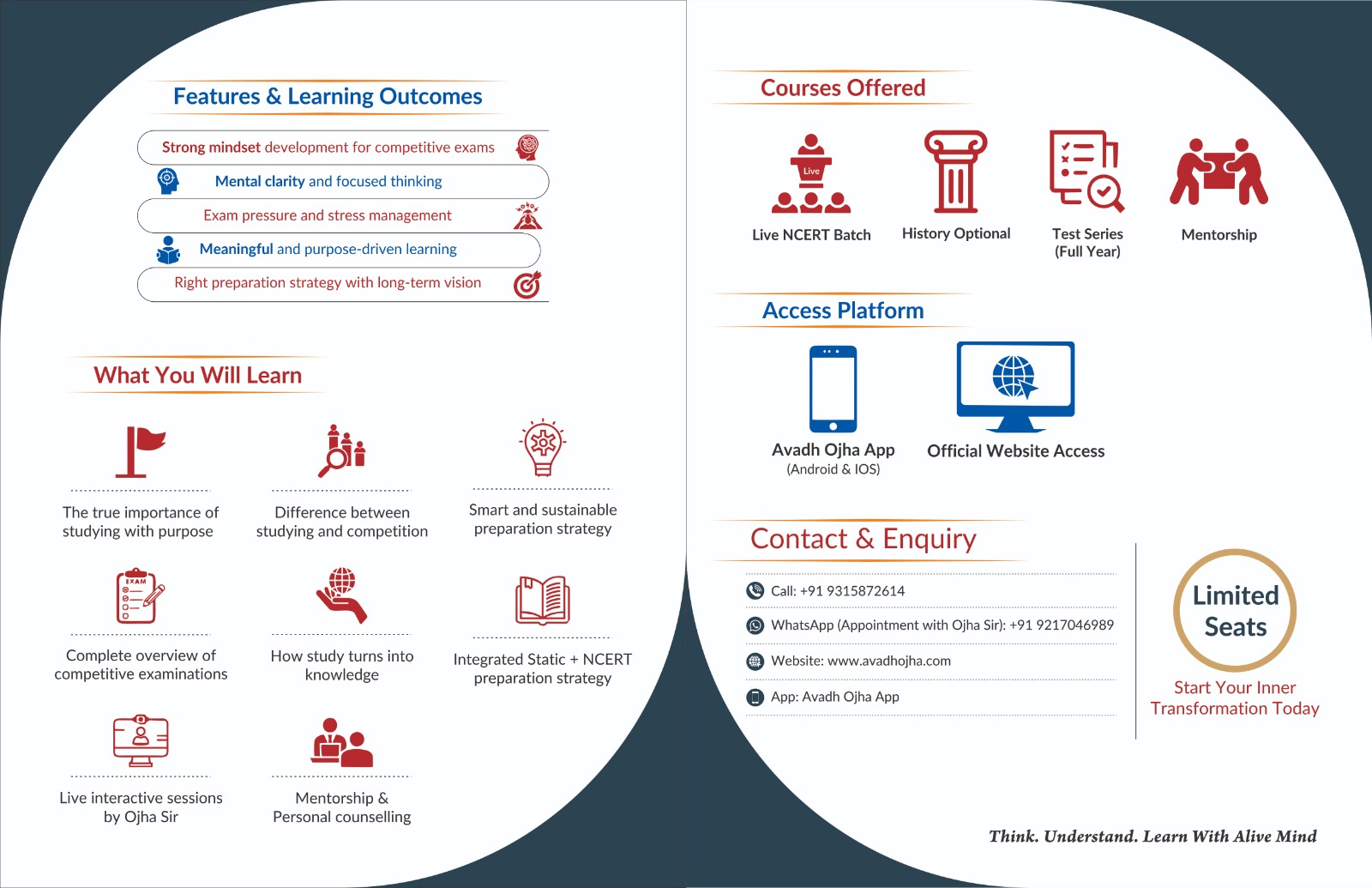 - Avadh Ojha Sir has always strived to evolve his teaching methods in response to the changing pattern of civil service exams and the evolving needs of his students. His regular interaction with his students, both in-person and online, is a testament to his dedication to their success.